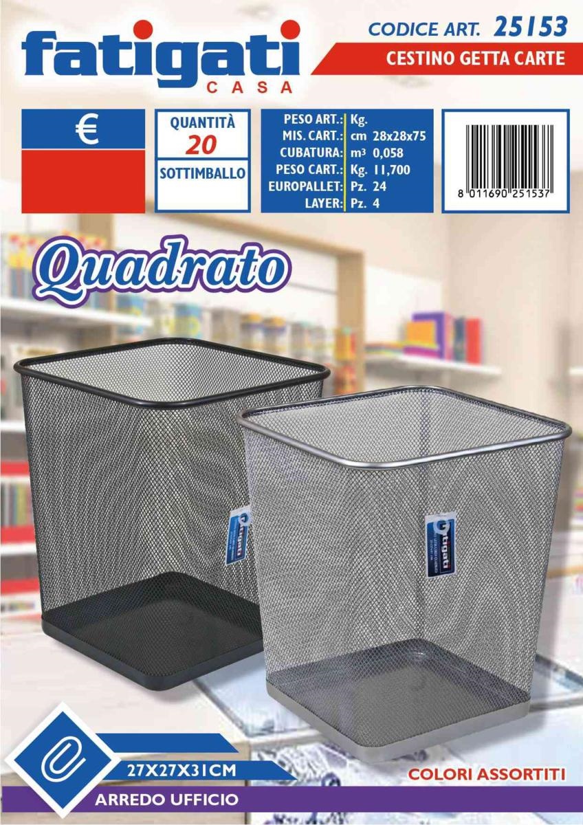 CESTINO GETTACARTA METALLO BASE QUADRA