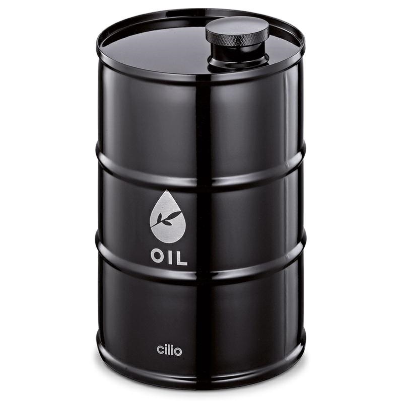 DIMENSIONI: D.9,5XH.15CM DESCRIZIONE: Questa oliera a forma di fusto d'olio, in acciaio inox laccato nero con tappo a vite è un eye-catcher in cucina e su qualsiasi tavola. Il contenitore scuro protegge l'olio d'oliva dalla luce e dall'ossidazione, preservandone l'aroma e la freschezza.