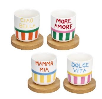 SET 4 BICCHIERE CAFFE' C/P LEGNO VIVA L'ITALIA