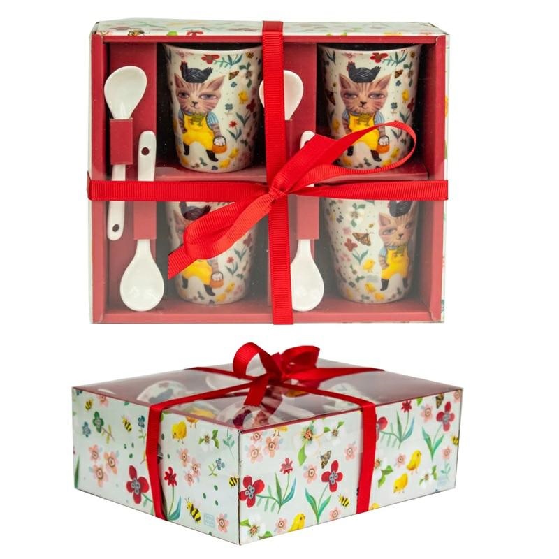 SET 4 TAZZA CAFFE' C/CUCCHIAIO GATTO COUNTRY CAT