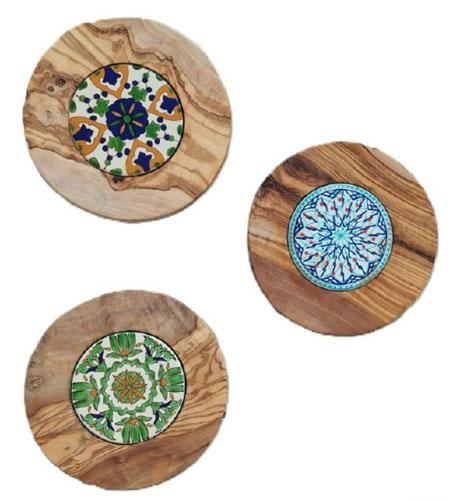 SOTTOPENTOLA LEGNO OLIVO E CERAMICA 20X20CM