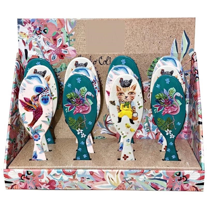 Spazzola per capelli con disegni originali e colorati dell'artista Michelle Allen.